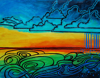The source of inspiration for this piece is pretty obvious- the Oregon Coast. Absolutely amazing sunsets that are frequently followed by rain. To me, the rain is the best part so I made sure to include it...hope it makes you want to go to the coast....may I suggest Pacific City?